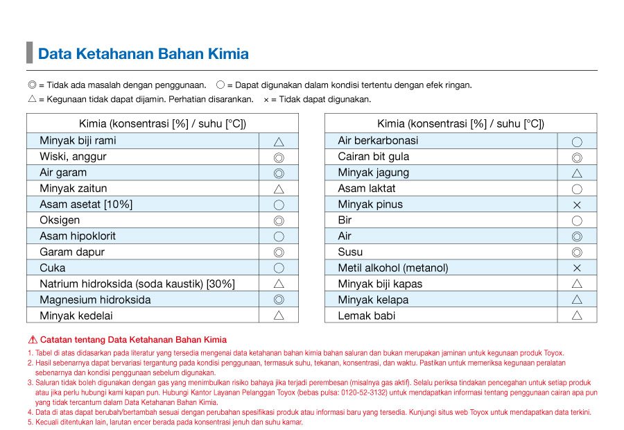 (* Menurut pengujian Toyox dengan selang olefin dibandingkan dengan selang silikon)
