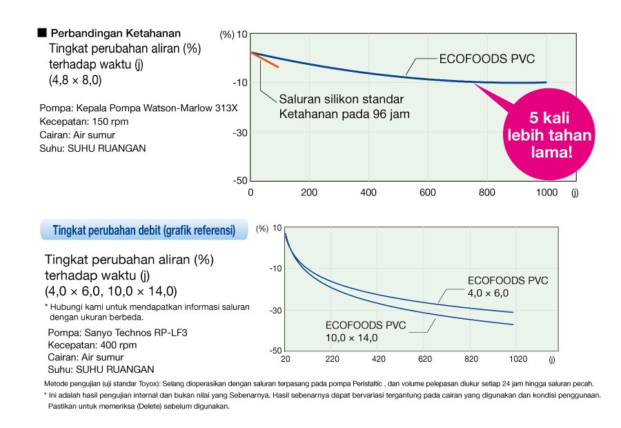 Setidaknya berumur 5 kali lebih lama dibandingkan selang silikon standar untuk mengurangi frekuensi penggantian